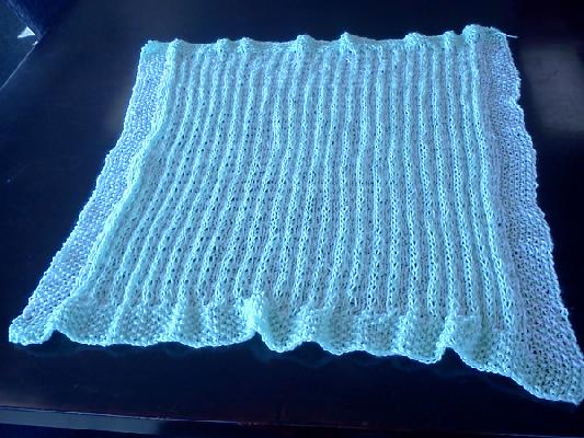 I have been knitting, just not writing about it. Currently, I am working on holiday gifts and a very quick baby blanket for my husband’s boss, to give to him tonight at his birthday party. He just had a baby (well, his wife did), and so I wanted to have the blanket done when I see him. JUST finished it today! ~pants~