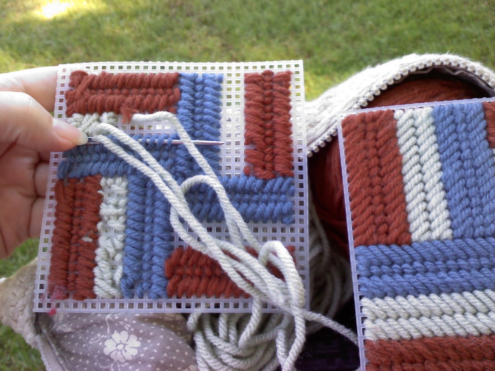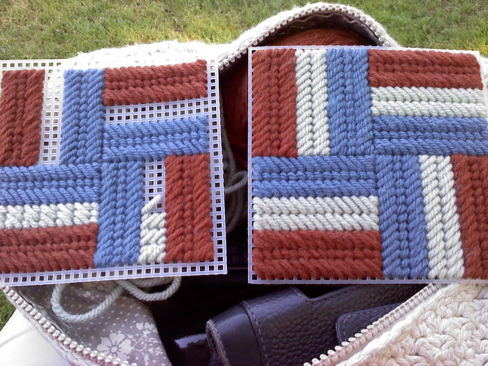 Here are the two pieces side by side, to get an idea of the pattern. We drew it out on paper first, coloring in the boxes, and had a couple different drafts before settling on this one.