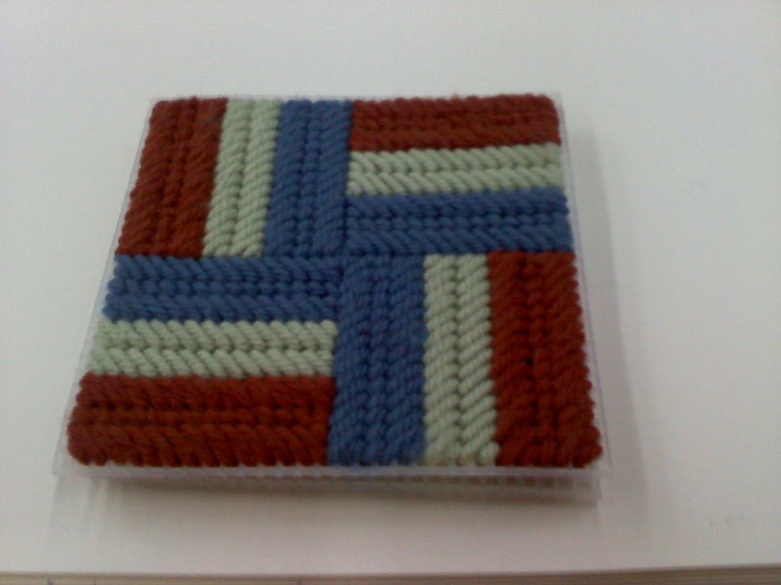 It’s got quite a bit of loft from the yarn. Since I’m doing a standard needlepoint stitch, it’s as thick on the bottom as it is on the top. It gives it a lot of padding. The plastic mesh, though, isn’t very strong, so it wouldn’t be a good candidate for a box to be carried in a purse. I’d like to see if there are materials (metal screen, maybe?) that would be good for that.