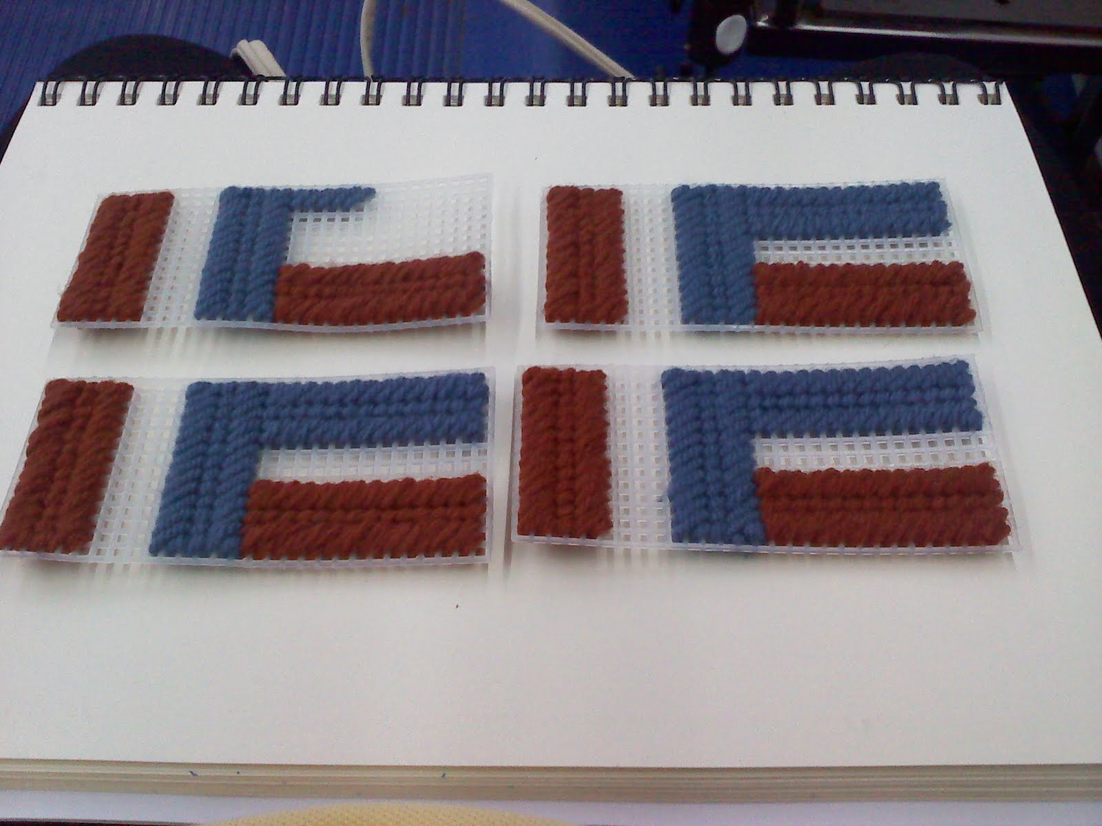 Here is a detail of all three colors interacting together. It’s not an arrangement I would have thought of just off the cuff, but I’m glad we decided to put them all together. I think the finished design is pleasing and it matches the table, so it’s a success all around.