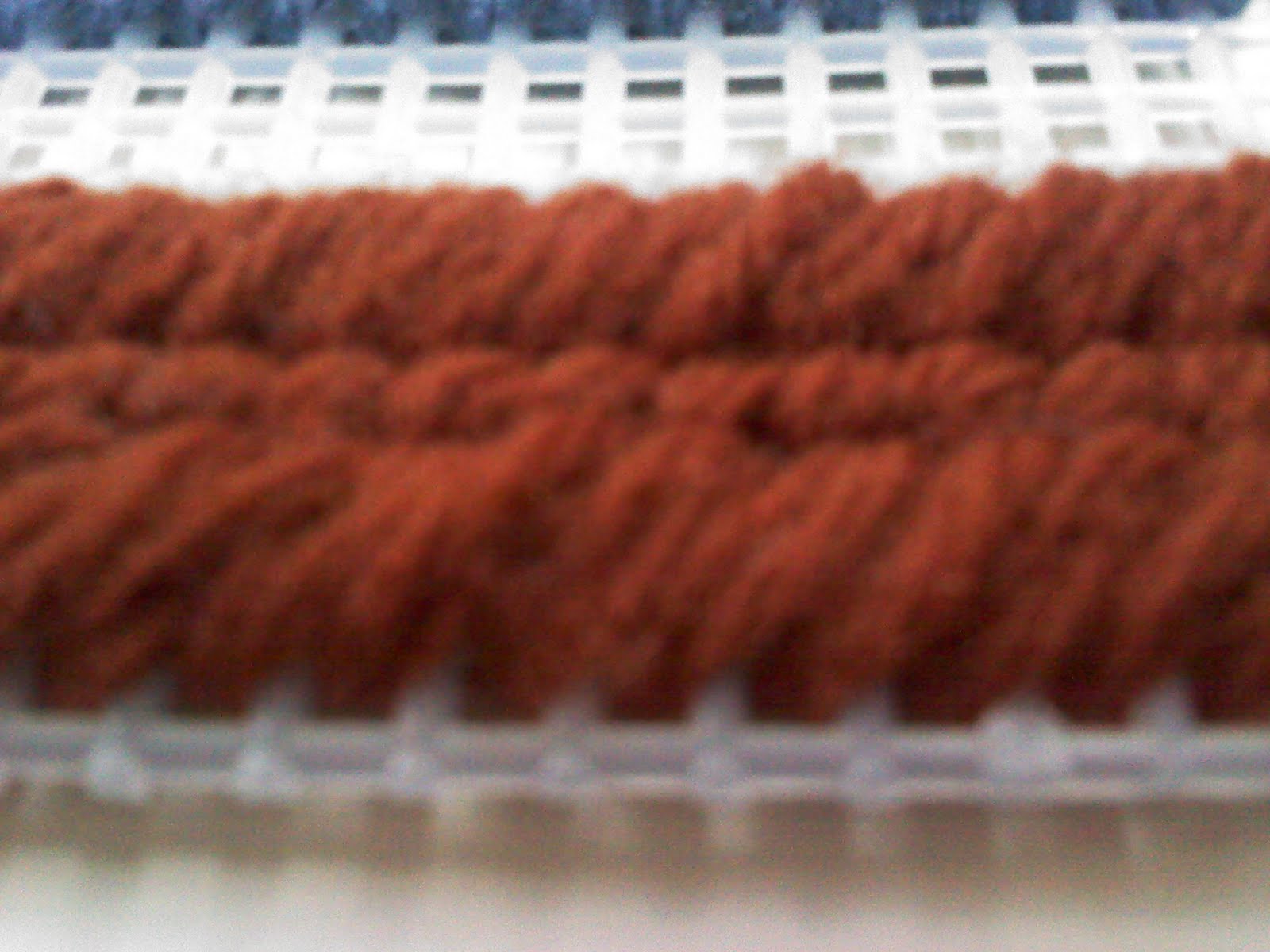 It’s a little out of focus, but here is a detail of the brown yarn. It’s held double, whereas the green and blue are just single.