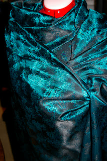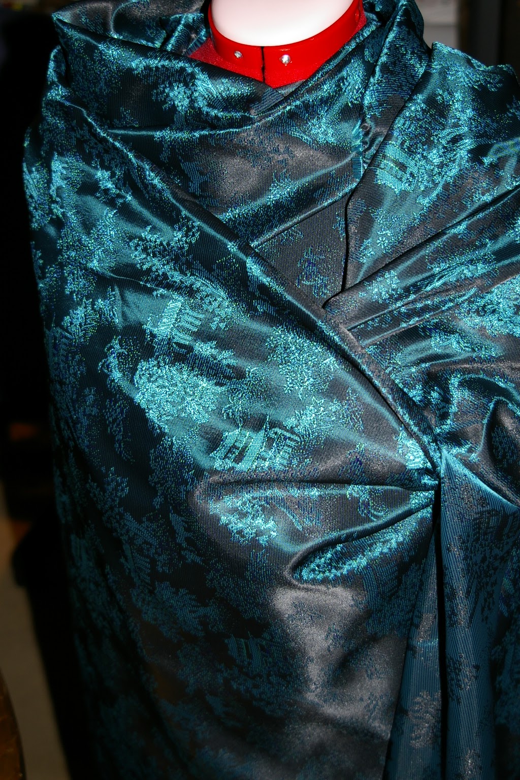 It’s frustrating, though, that there are so many relative to sewing. Putting that aside is difficult. I went to an amazing fabric store with a friend, the Textile Discount Outlet. It’s overwhelming and fun at the same time. They have a whole wall of fabric that’s under $4 a yard, where I found a lovely, satiny black fabric with blue detailing that looks Asian.
