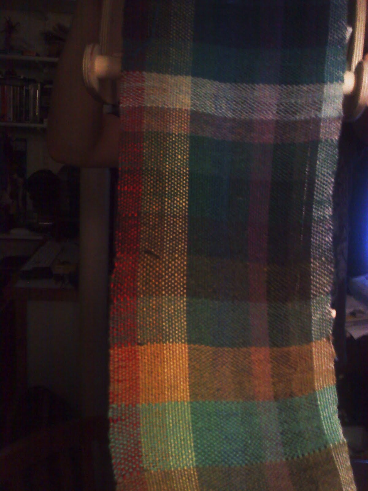 Here is another view of the same segment of fabric. In this view, it seems much more plaid-like. There are some interactions that I didn’t expect to like but really do, including the red and green and the center sections.