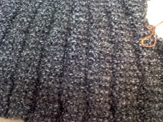 I decided to tackle a bolero for my friend R…, and figured it would be easy because it’s a Lion Brand free pattern. It stumped me a little at first, because of instructions like “and at the same time” in all caps. But I took it apart, started over again, and am pleased to report that I have now finished the left front.