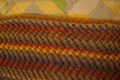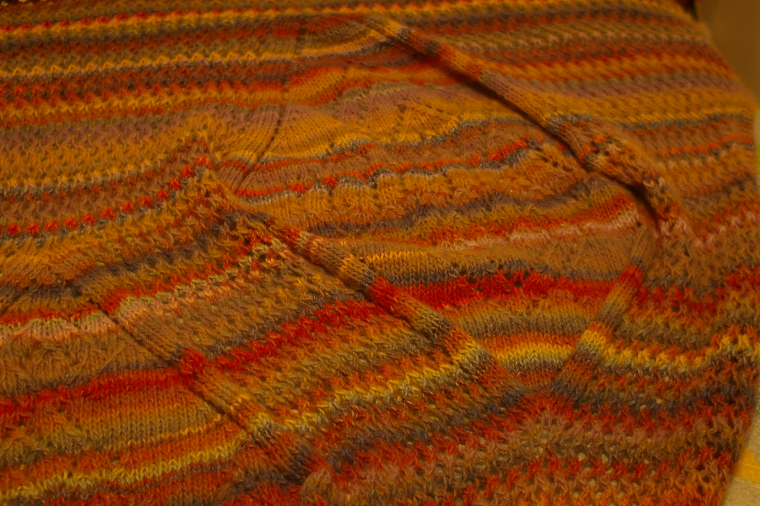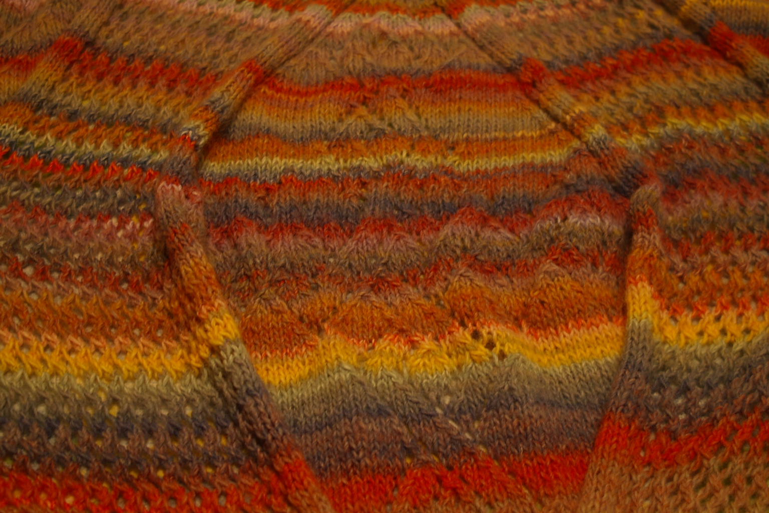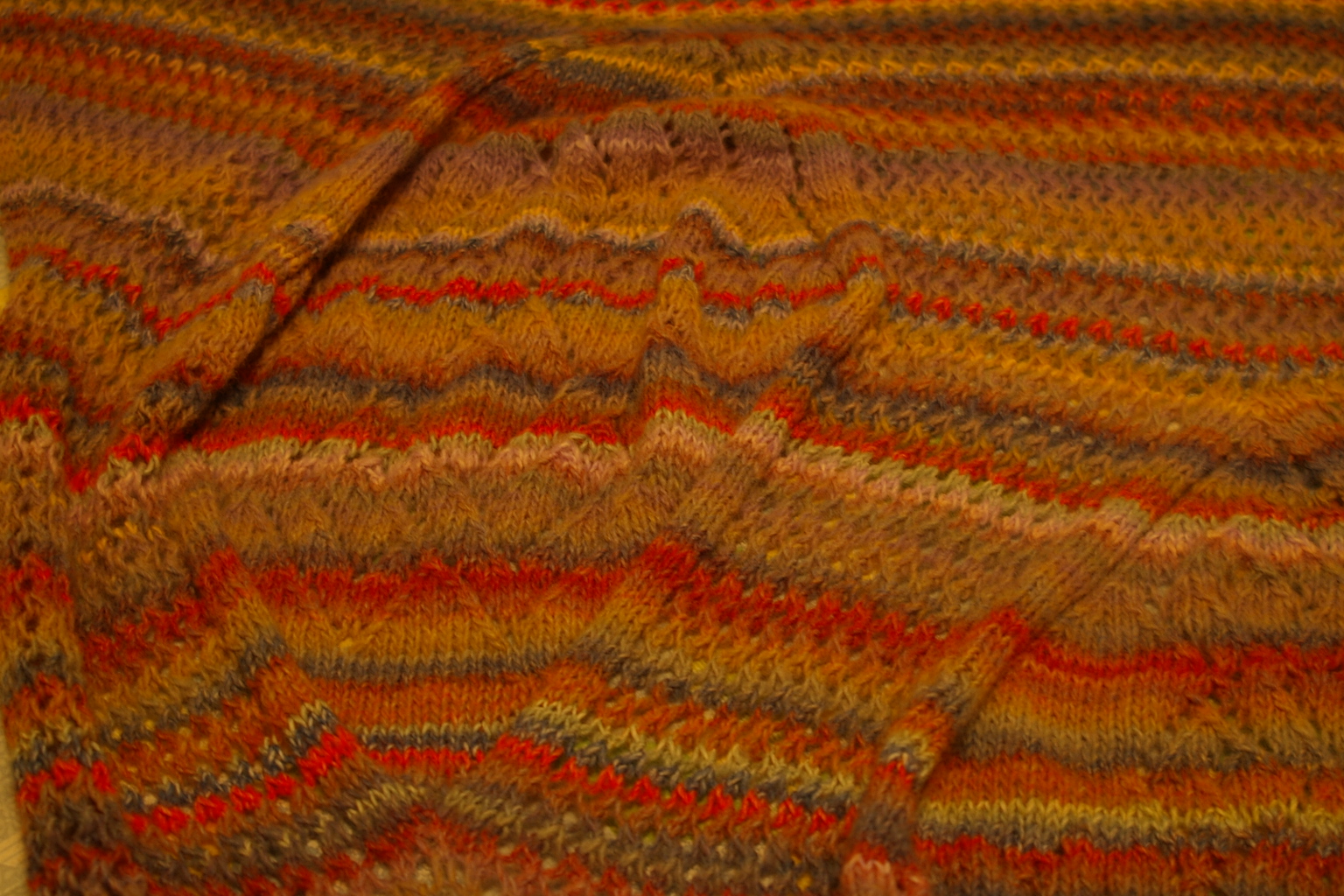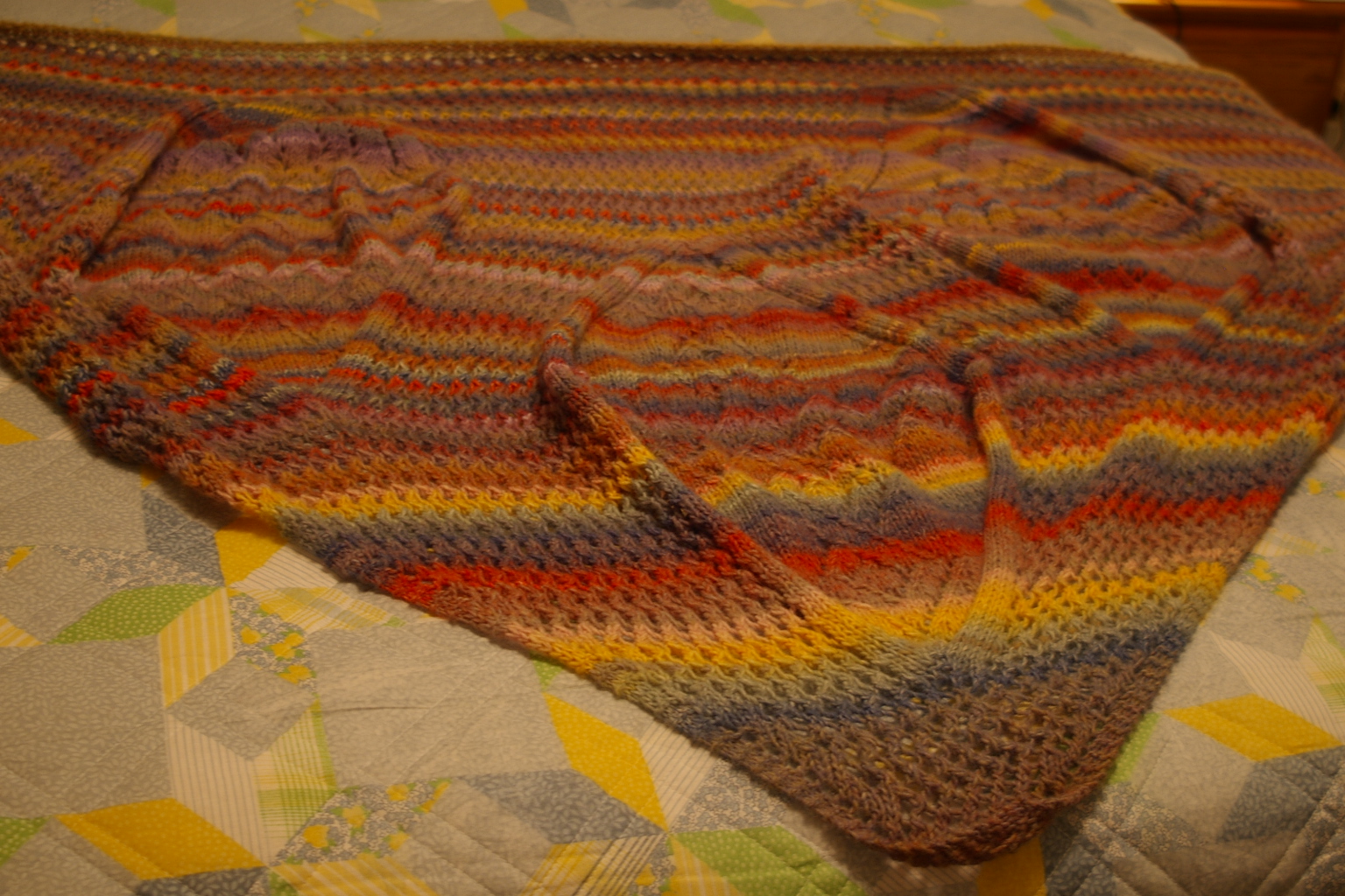 | I stepped back to show the shawl again. I love the way the yarn stripes. |