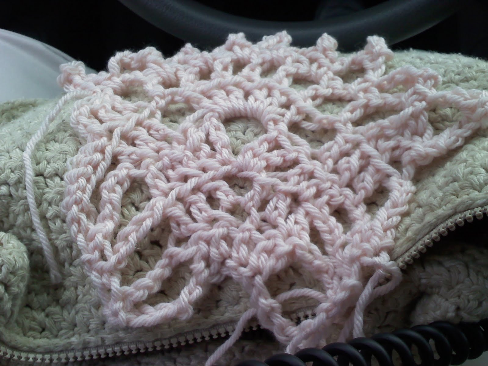 This particular motif has, if I recall correctly, seven levels. You start at the bottom and rotate back and forth up to the picots at the top. It was actually much less difficult because I used such large yarn; it would be a lot more fussy with small yarn (though pretty).