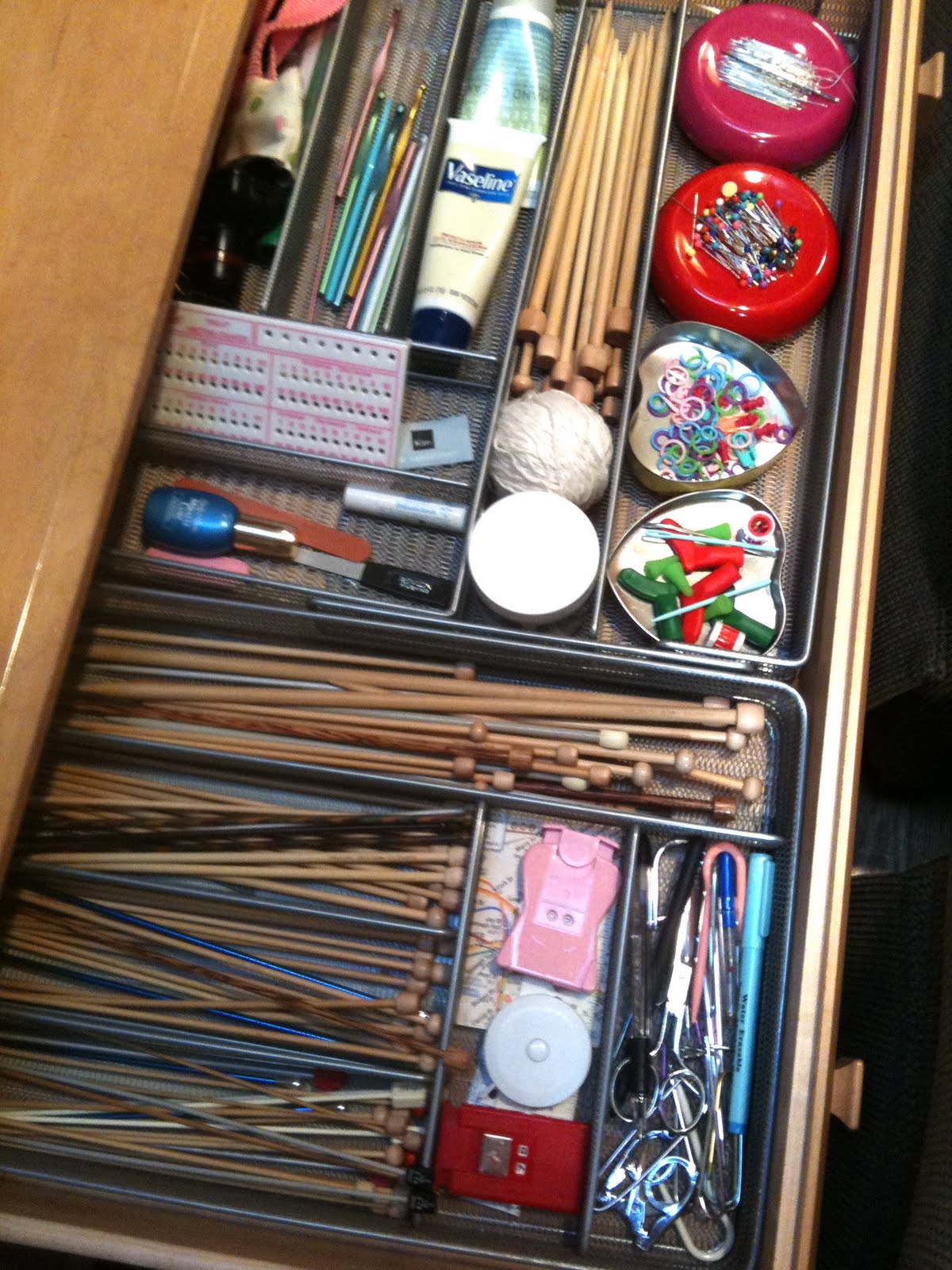 I came across a picture today that totally excited me. One can use a desk organizer for knitting and sewing supplies! The manufacturers probably think it’s for pens, pencils, and staplers, but we know better, don’t we? Here’s an idea to get your juices flowing: