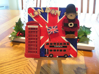 Wow! I can\’t decide what I like most. The afghan is beautiful, the London sticker art is fun and the miniature shadowbox is cute.
