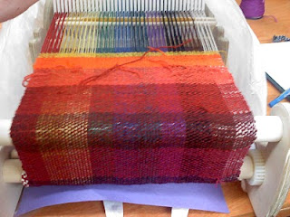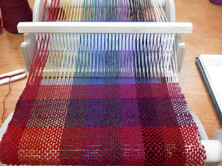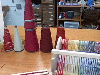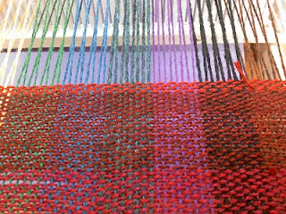 These are the red tones as they’re woven on. I like the plaid effect as they get woven.