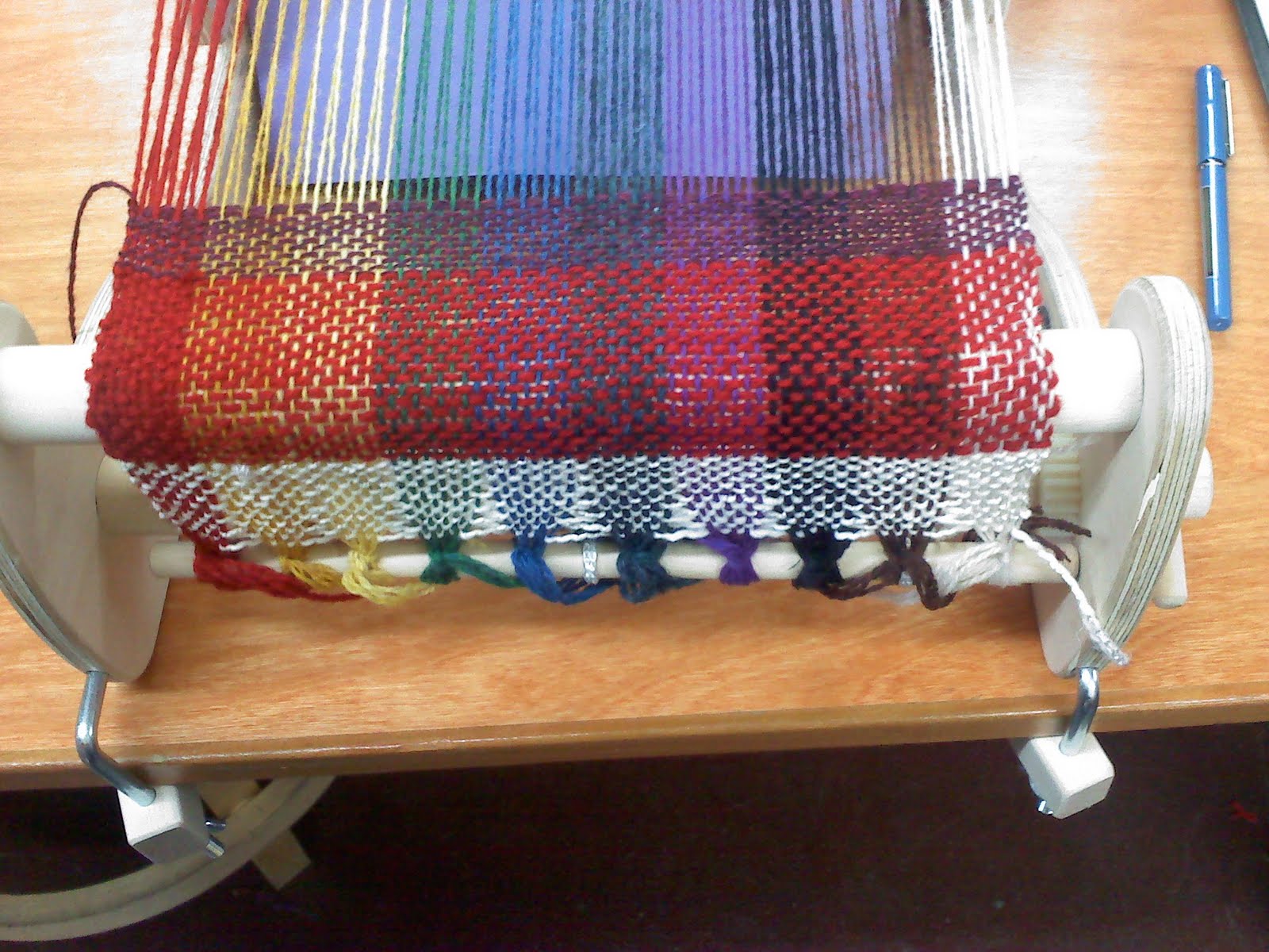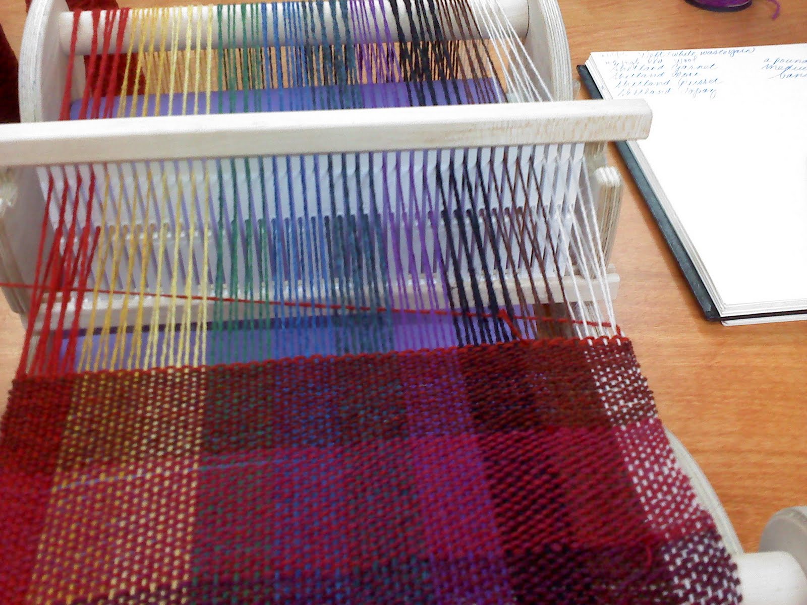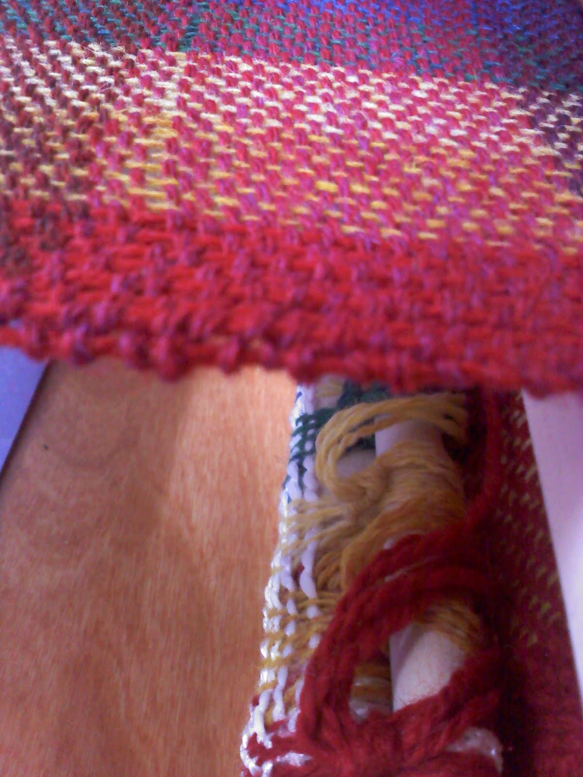 These are the red tones as they’re woven on. I like the plaid effect as they get woven.