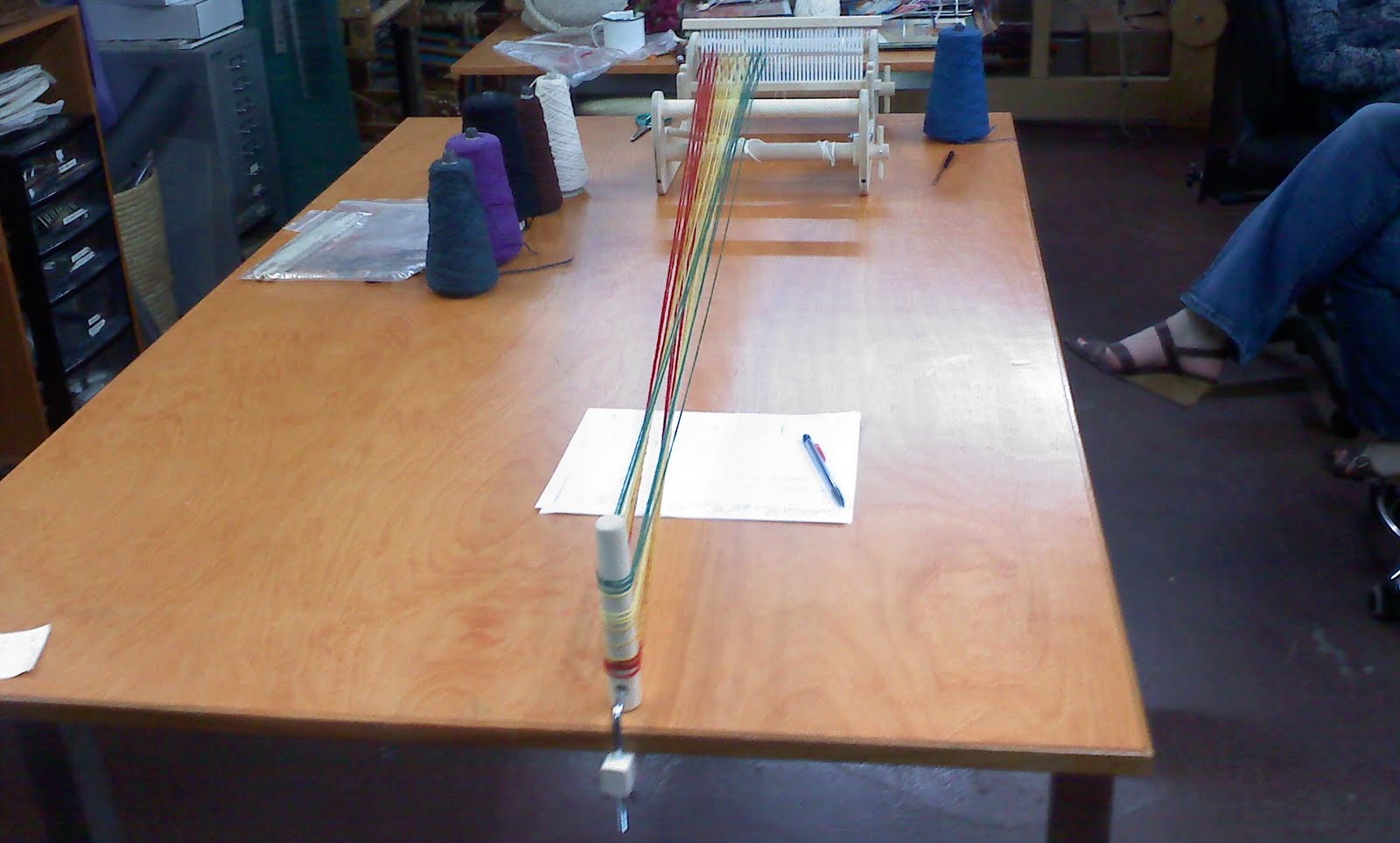 I’ve taken a couple pictures of dressing the loom, and wanted to share my experiences.